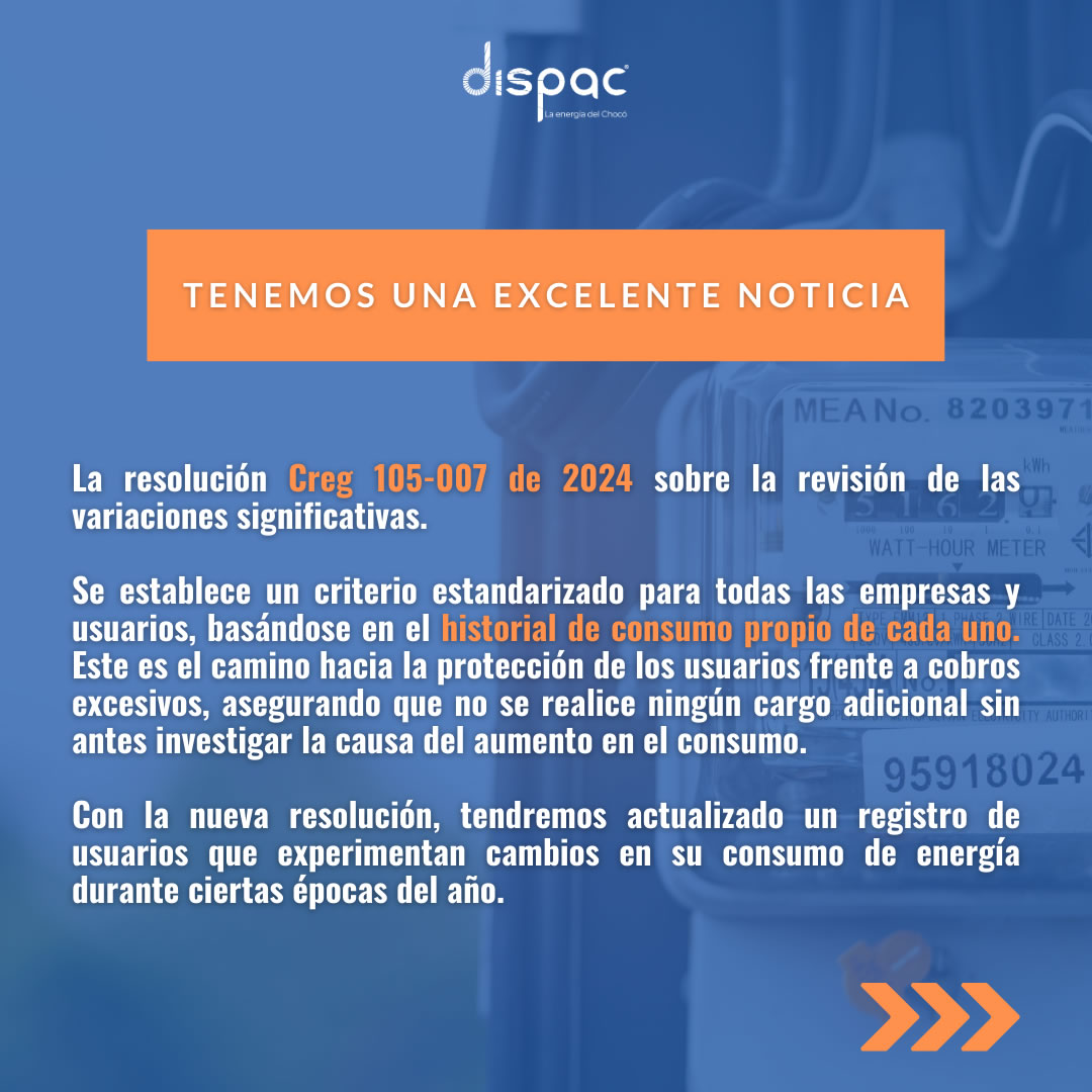 Con la nueva resolución, DISPAC contará con un registro actualizado de usuarios que experimentan cambios en su consumo de energía durante ciertas épocas del año.