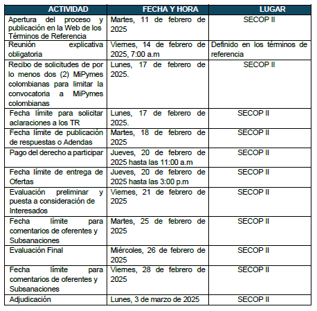 Documentos del proceso se encontraran en la plataforma SECOP II.
