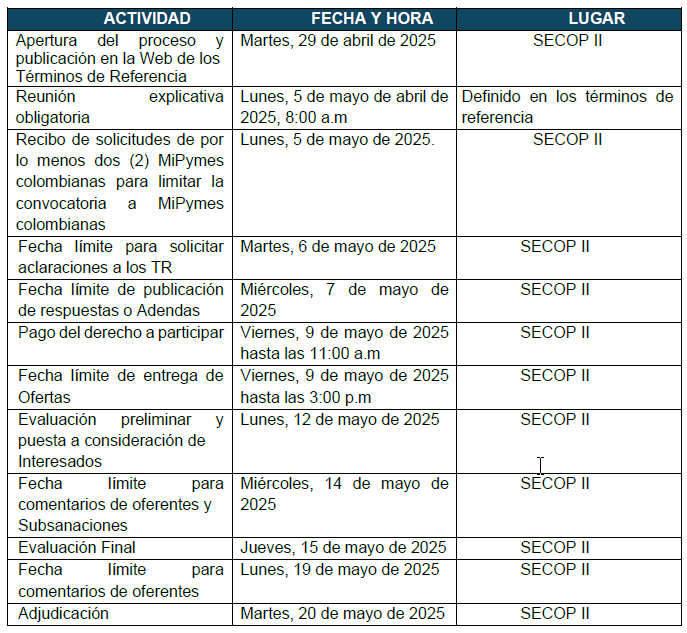 DISPAC S.A E.S.P. está interesada en recibir OFERTAS dentro del presente proceso de Contratación, cuyo objeto es: INTERVENTORIA TECNICA, ADMINISTRATIVA, FINANCIERA, JURIDICA, AMBIENTAL, PREDIAL, SOCIAL Y CONTABLE PARA EL CONTRATO DE OBRA PARA LA IMPLEMENTACION DE SOLUCIONES ENERGETICAS SOSTENIBLES PARA LA AMPLIACION DE COBERTURA A COMUNIDADES RURALES DEL MUNICIPIO RIOSUCIO DEPARTAMENTO DEL CHOCO.