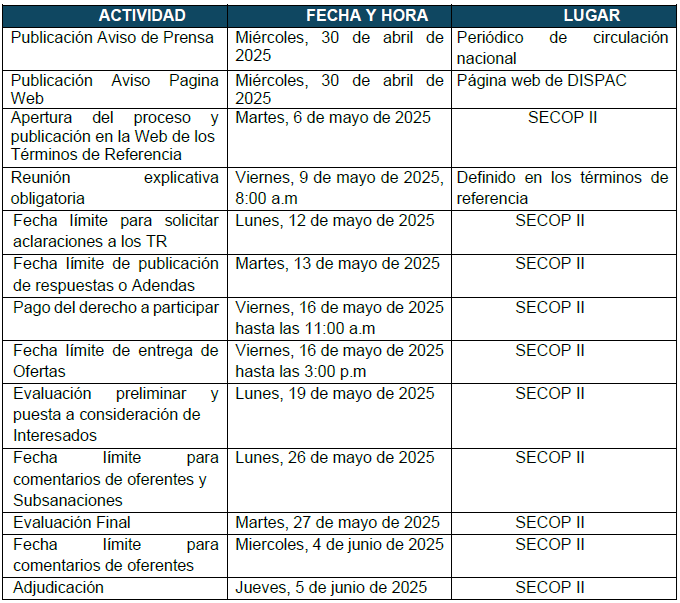Documentos del proceso se encontraran en la plataforma SECOP II.